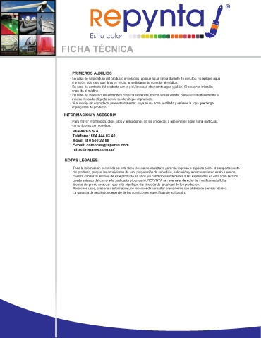 queda a riesgo del comprador, aplicador y/o usuario. REPYNTA se reserva el derecho de modificar esta ficha