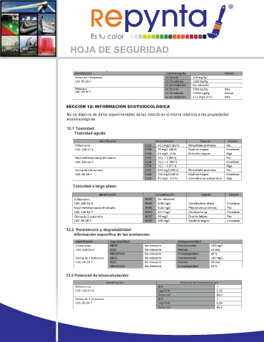 SECCIÓN 12: INFORMACIÓN ECOTOXICOLÓGICA