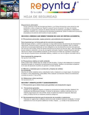 métodos seguros(sección 6 de la FDS). Evitar el vertido libre desde el recipiente. Mantener