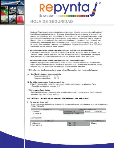 limpieza. Evitar la existencia de atmósferas peligrosas en el interior de recipientes, aplicando en