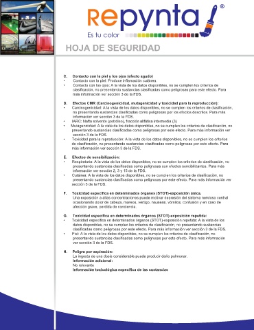 clasificadas como peligrosas por este efecto. Para más información ver sección 3 de la FDS.