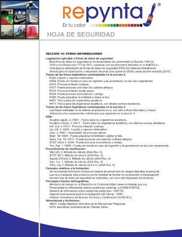 de esta hoja de datos de seguridad de materiales, así como del etiquetado del producto.