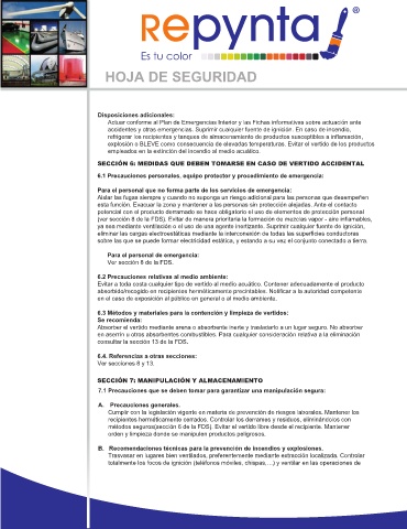 métodos seguros(sección 6 de la FDS). Evitar el vertido libre desde el recipiente. Mantener
