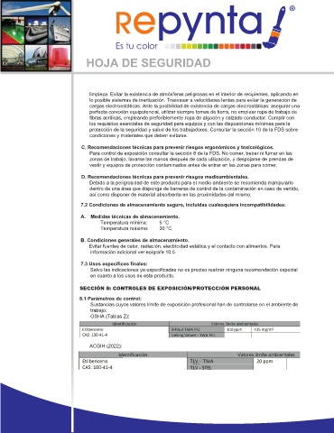 SECCIÓN 8: CONTROLES DE EXPOSICIÓN/PROTECCIÓN PERSONAL