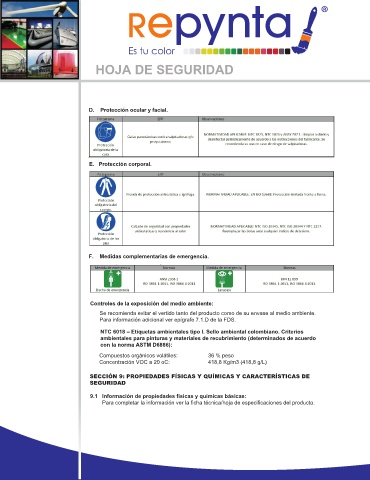SECCIÓN 9: PROPIEDADES FÍSICAS Y QUÍMICAS Y CARACTERÍSTICAS DE