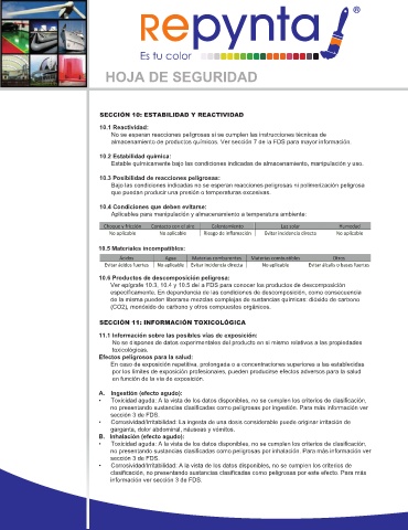 Ver epígrafe 10.3, 10.4 y 10.5 del a FDS para conocer los productos de descomposición