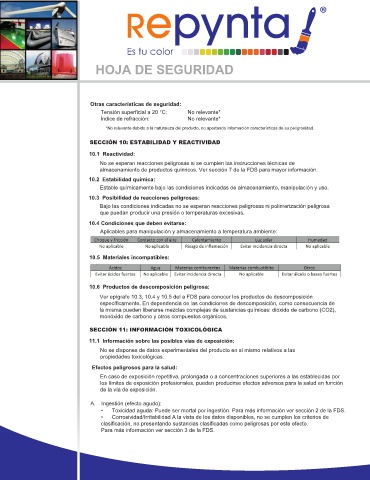 Ver epígrafe 10.3, 10.4 y 10.5 del a FDS para conocer los productos de descomposición