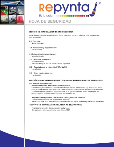 Page 10 - Hoja de Seguridad - Vinilo Tipo 1 y Lavable